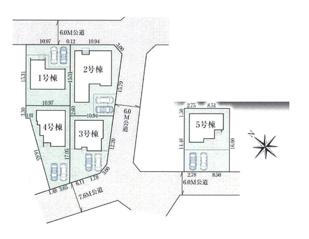 - -(北東 公道 6.0m)(南東 公道 6.0m)(南西 公道 7.6m)(南西 公道 6.0m)